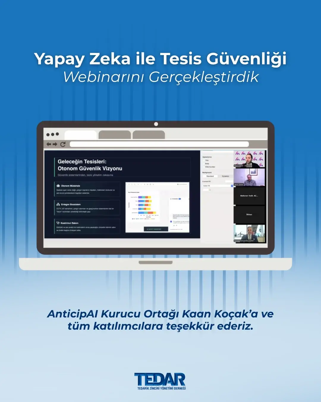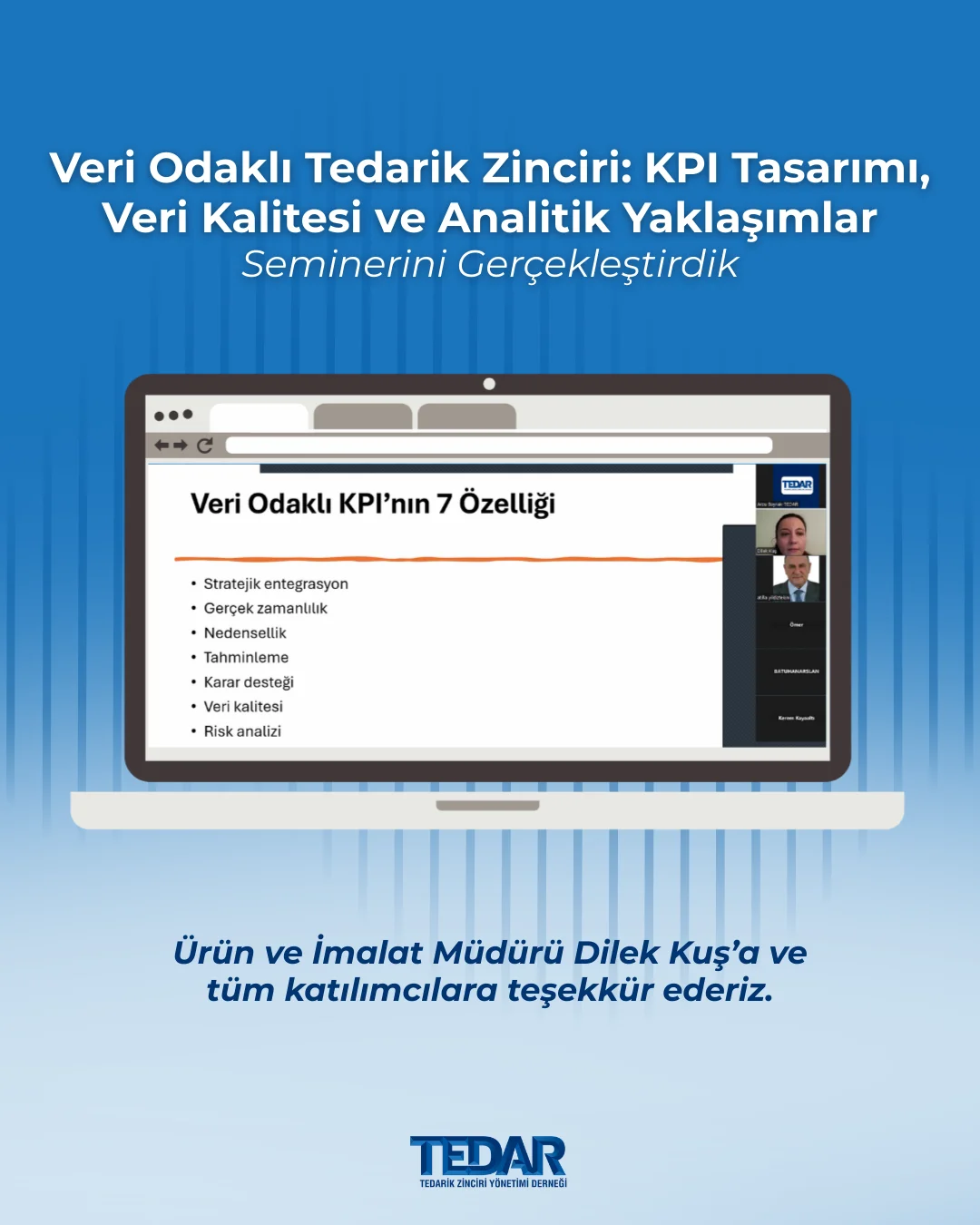 Değerli bilgi ve tecrübelerini paylaştığı için Sn. Faruk Demir'e, ev sahipliği için Siemens Türkiye'ye ve Siemens Tedarik Zinciri Direktörü & TEDAR Yönetim Kurulu Başkanı Sn. Tuğrul Günal’a ve tüm katılımcılara teşekkür ederiz.