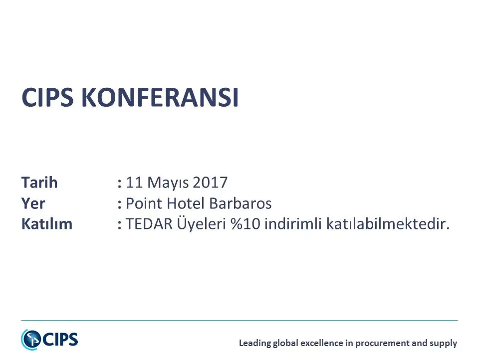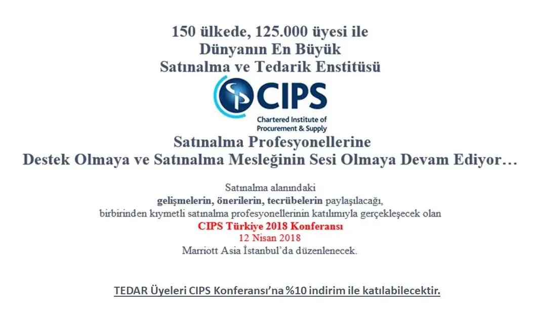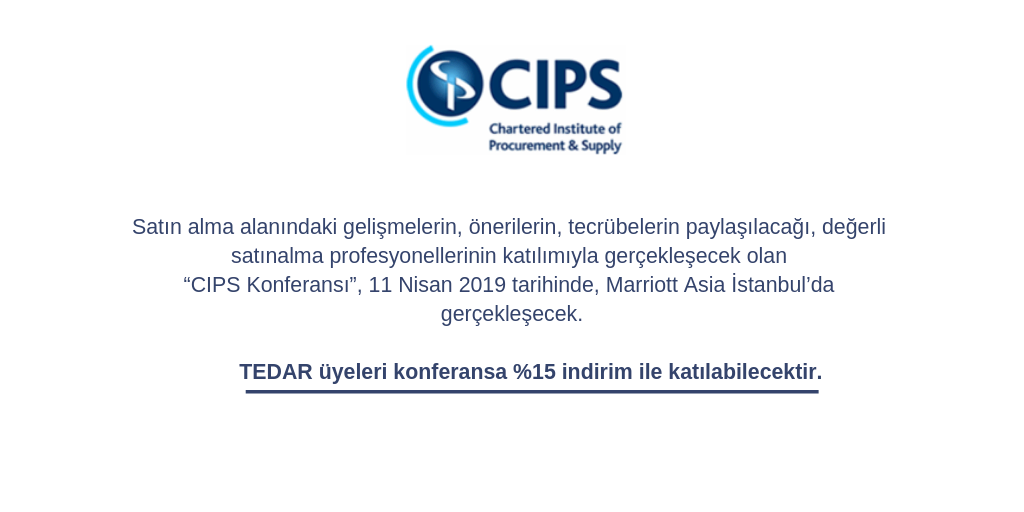 11 Mayıs 2017 tarihinde düzenlenecek CIPS Konferansı'na TEDAR üyeleri %10 indirim ile katılabileceklerdir.