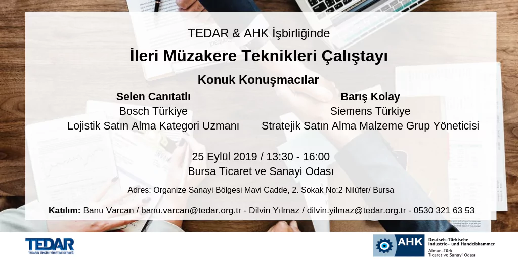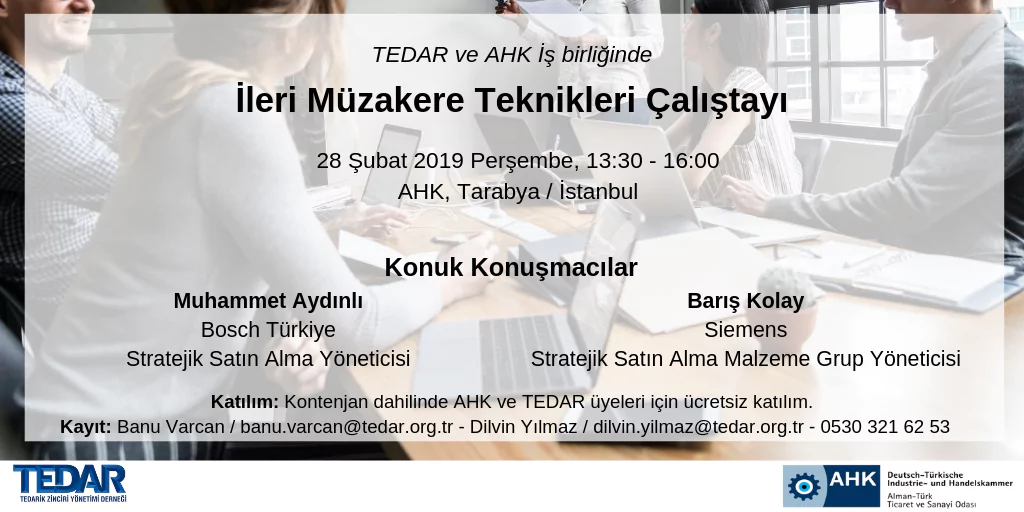 TEDAR ve AHK iş birliği ile İleri Müzakere Teknikleri Çalıştayı 28 Şubat 2019 tarihinde ...