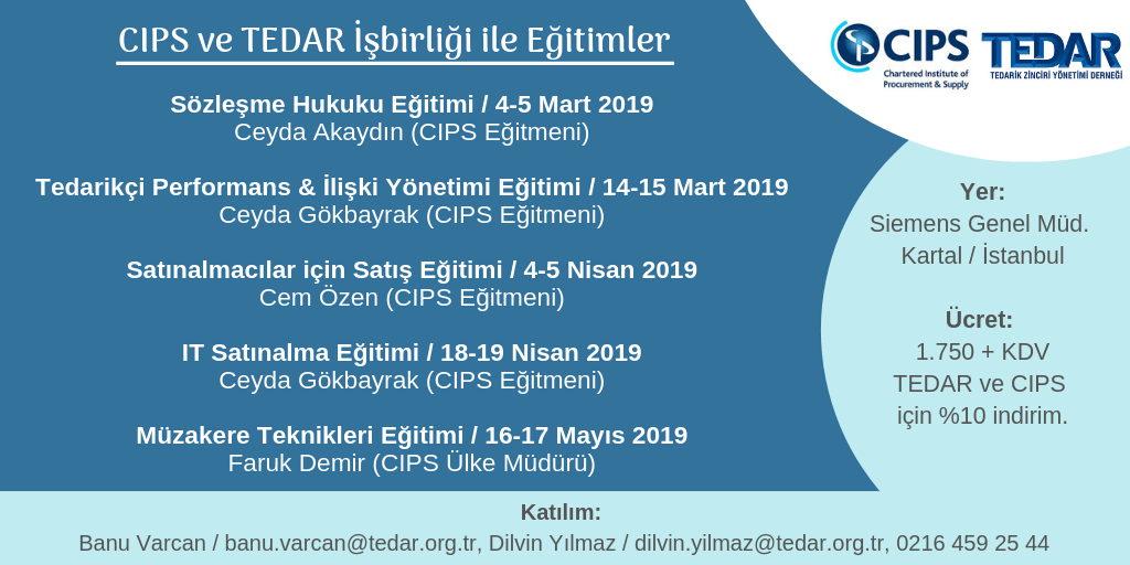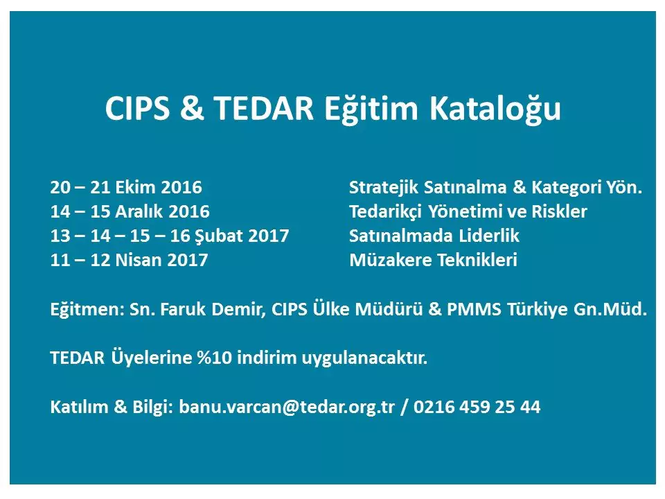 CIPS & TEDAR işbirliğinde, 25-26 Mayıs 2016 tarihinde Stratejik Satınalma & Kategori Yönetimi eğitimi ...