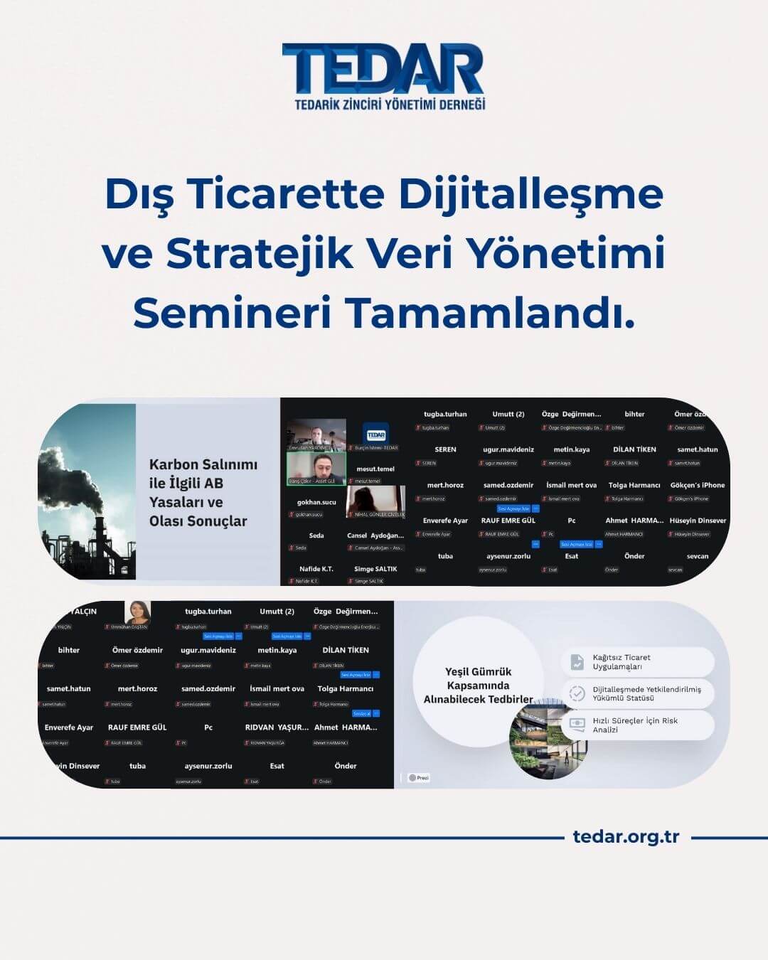 TEDAR tarafından düzenlenen “İthalat Mevzuatı” başlıklı eğitimimizi 27 Haziran 2025 tarihinde tamamladık.
