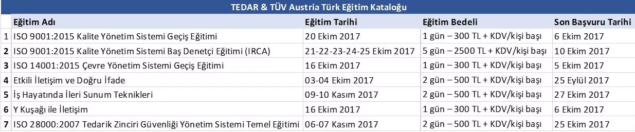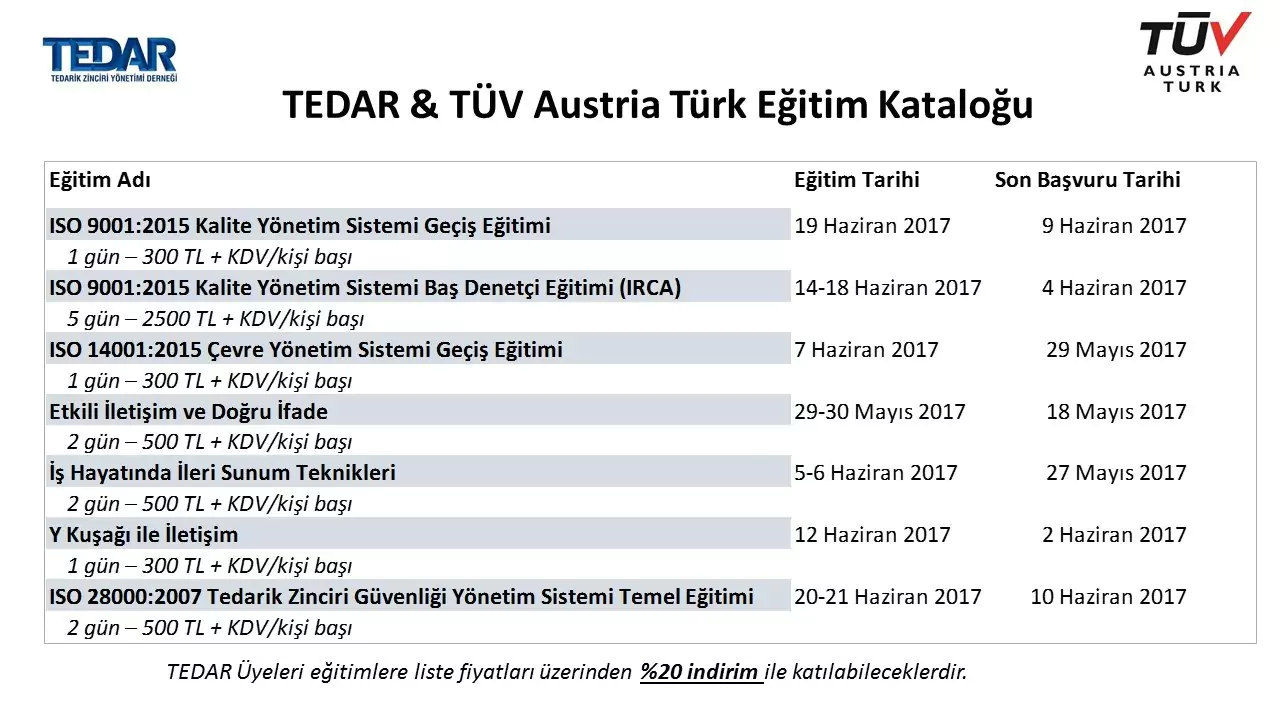 TEDAR & TÜV Austria Türk işbirliğinde oluşturulan eğitim kataloğunda yer alan eğitimlere, TEDAR üyeleri, ...