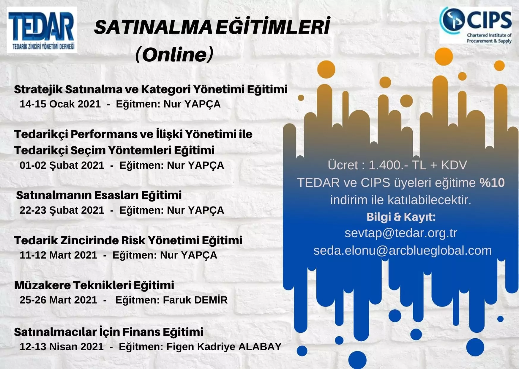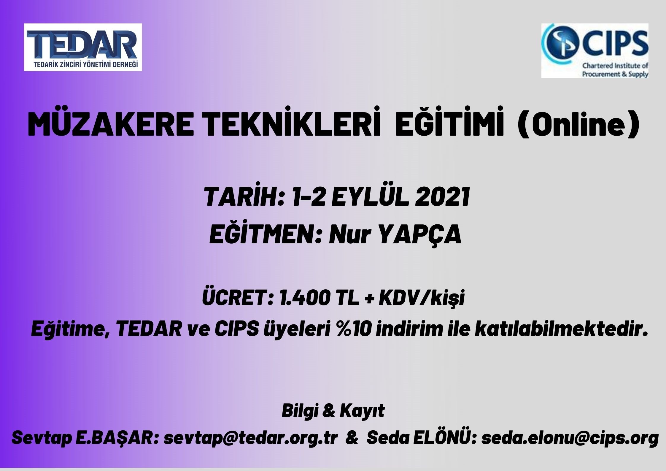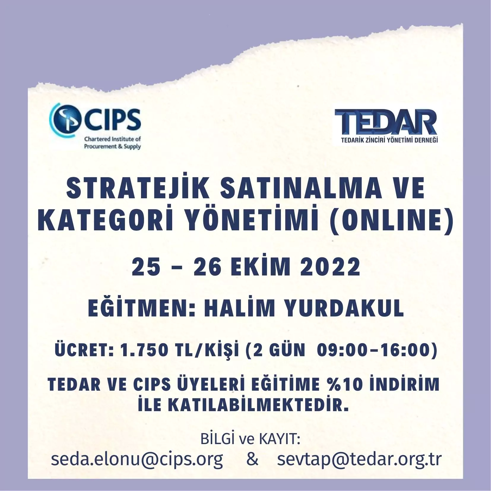 CIPS & TEDAR Eğitim Kataloğunda yer alan eğitimlere TEDAR üyeleri %10 indirim ile katılabileceklerdir.
