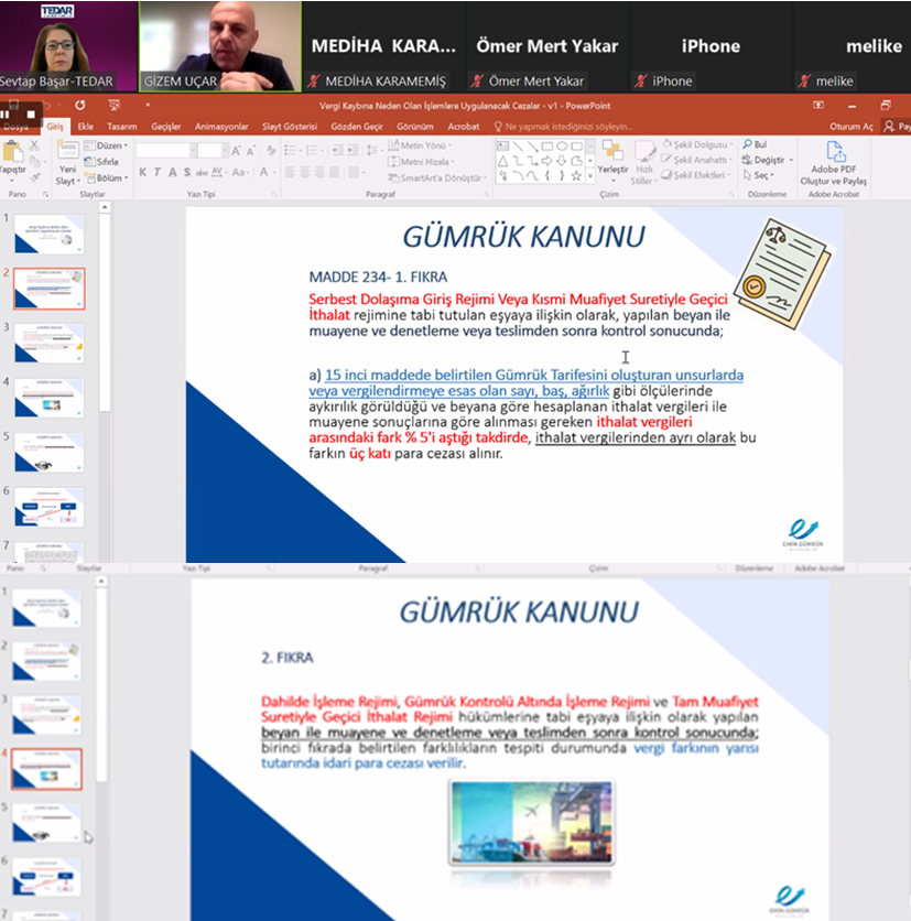 TEDAR ve Subaşı Gümrük Müşavirliği iş birliği ile organize edilen ikinci eğitim “Incoterms 2020 ...