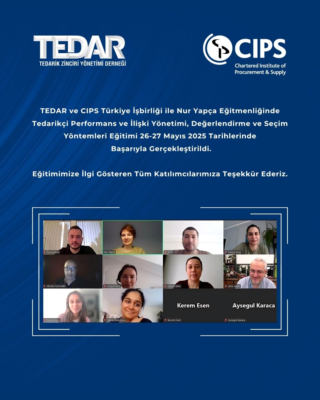 TEDAR ve CIPS iş birliğinde düzenlenen Lojistik Satınalma Eğitimi 25-26 Nisan 2024 tarihlerinde gerçekleşti.