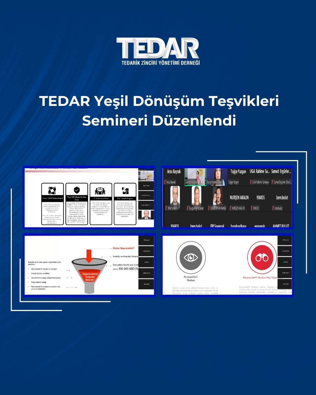 TEDAR tarafından 3 Haziran 2025 tarihinde Yeşil Dönüşüm Teşvikleri Semineri düzenlendi.